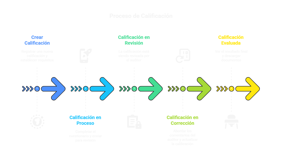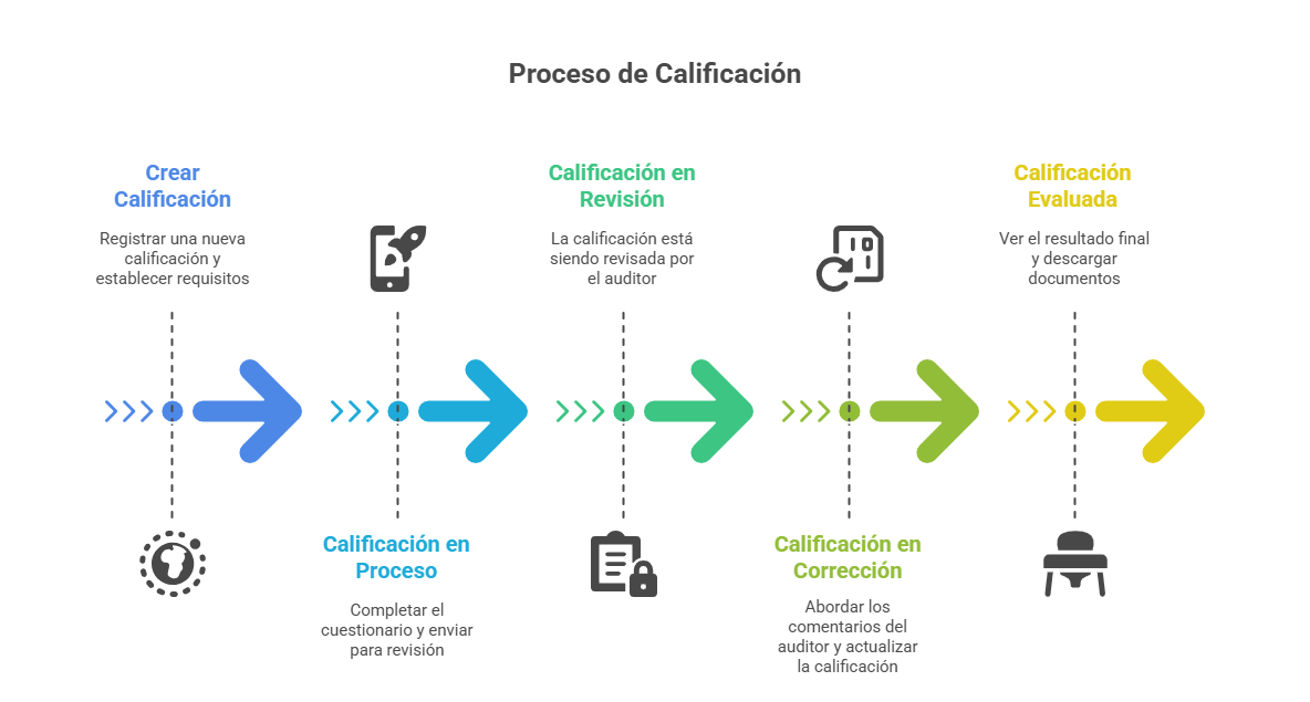 Se describe el flujo completo que sigue una calificación dentro de Certiprov, desde su creación hasta su cierre.