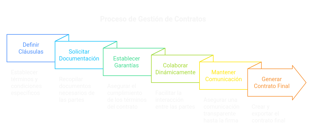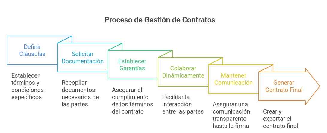 Contratos es un módulo para la creación personalizada de contratos de adquisición de bienes y servicios. Permite definir cláusulas, solicitar documentación habilitante y establecer garantías, con la participación dinámica del responsable, asesoría legal y proveedor. Mantiene una comunicación constante entre las partes hasta la firma, asegurando el acuerdo de todos los involucrados y posibilitando la generación y exportación del contrato final.
